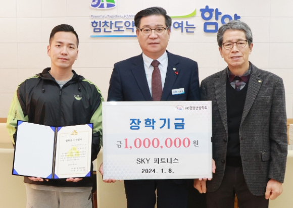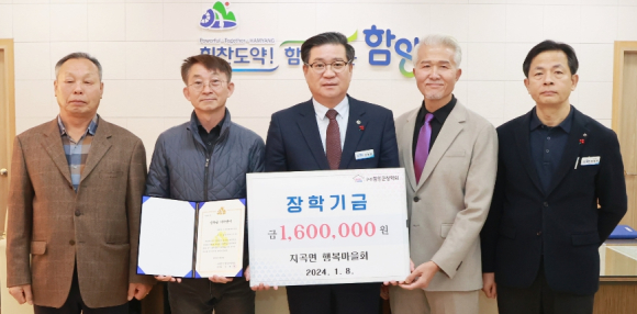 함양군, 2024년 갑진년 첫 장학금 기탁 훈훈지곡면 행복마을회 160만원·SKY피트니스 김백헌 대표 100만원 기탁정호 기자 / |