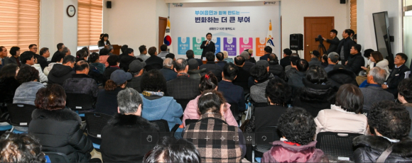 이날 부여읍 주민 200여명, 충청남도의회 의원, 군의원, 유관기관단체장들이 자리한 가운데 2024년도 부여군 군정방향과 현안에 대한 질의응답 시간을 가졌다.