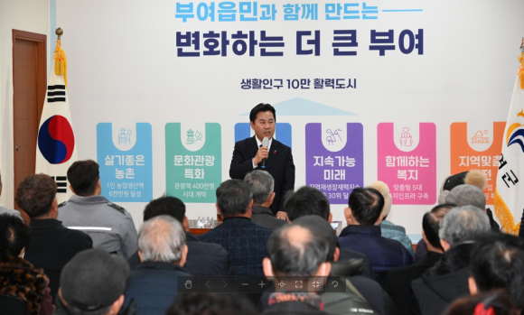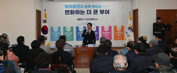 또한 ▲부여시장 현대화·활성화 사업 ▲장암면 북고리 세명기업사 불법 폐기물 처리 ▲백마강 국가정원 추진 ▲문화예술교육종합타운 건립을 4대 현안과제로 뽑고 추진상황에 대해 상세하게 설명하며 직접 군민들의 궁금증을 해소했다.