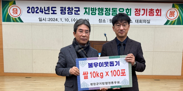 평창군지방행정동우회, 정기총회에서 불우이웃돕기 쌀 기탁식 가져새해를 맞아 약 340만 원 상당의 쌀 기탁정민권 기자 / |
