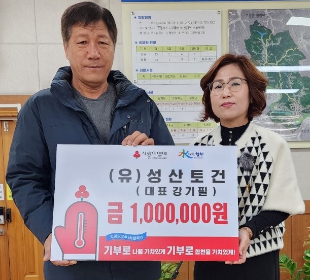(유)성산토건, 쌍책면에 이웃돕기 성금 100만원 기탁NULL김도형 기자 / |