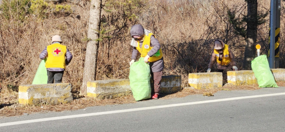 함양 서상면 적십자부녀봉사회 환경정화 활동육십령로 일대에서 환경정화 활동정호 기자 / |