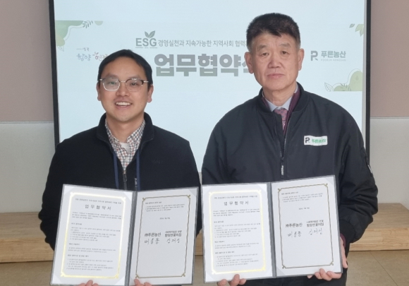 중증장애인 거주시설 함양연꽃의집과 ㈜푸른농산(대표이사 배종용)은 1월 16일 함양연꽃의집에서 ESG 경영 실천과 지속 가능한 지역사회 협력 구축체계를 위한 업무협약식을 진행하였다.