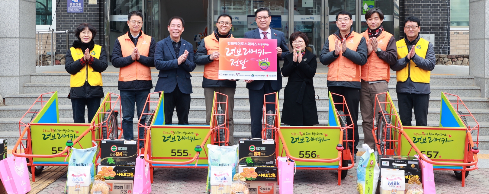 함양군자원봉사센터, ‘사랑의 리어카’ 전달식 가져한화에어로스페이스와 함께하는 지역사회 공헌사업, 사랑의 리어카 4대·생필품 꾸러미 등 전달정호 기자 /