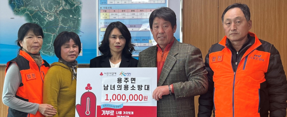 합천군 용주면 남녀의용소방대, 용주면에 이웃돕기성금 100만원 기탁NULL이광훈 기자 / |