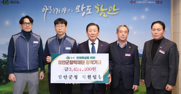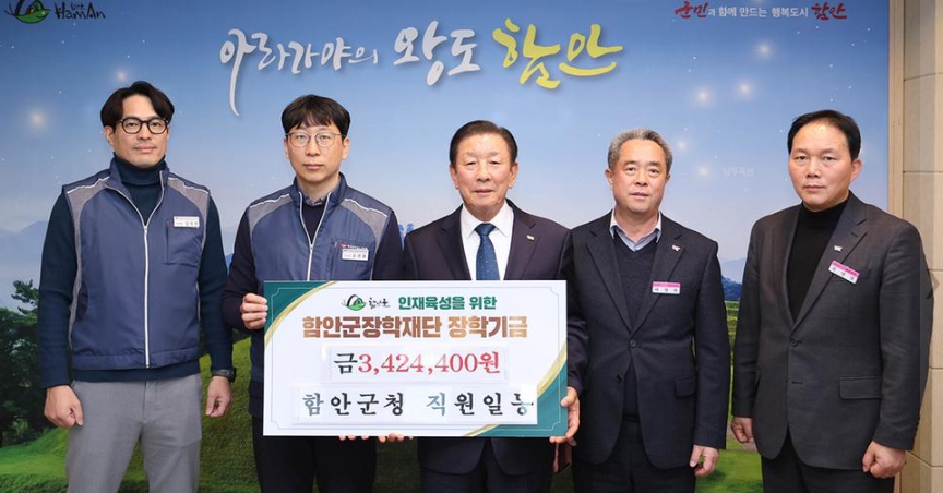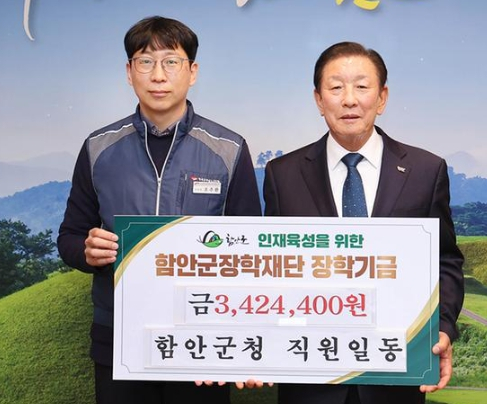함안군장학재단에 장학기금 기탁행렬 이어져함안군청 직원일동, 함안군장학재단에 장학기금 300여만기탁정호 기자 / |