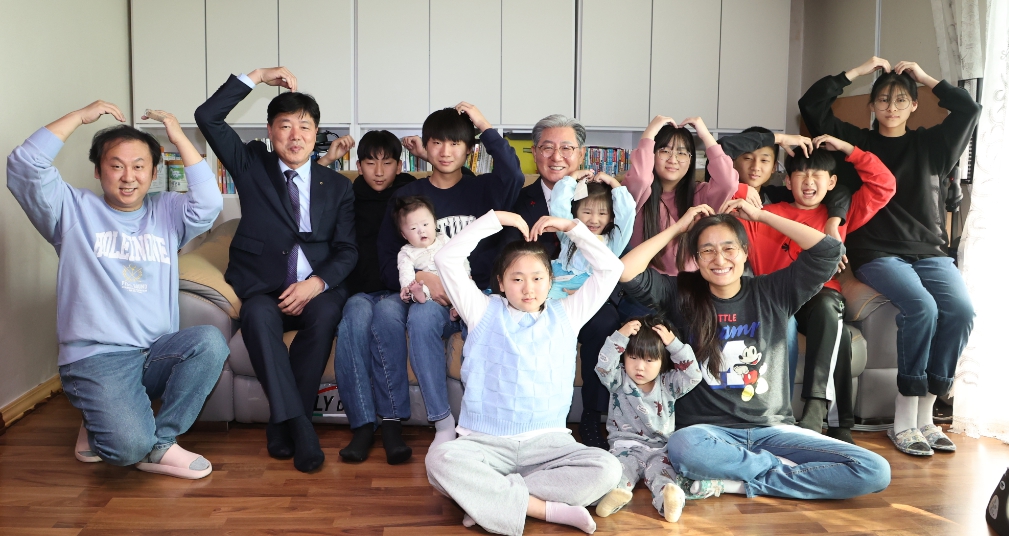 의령군, 전국 최초 셋째 이상 1인당 18세까지 매월 10만원 지원다자녀튼튼수당...초2~고3 교육인구 실질적 도움'세 자녀' 오 군수...10남매 다둥이 가정 방문 격려 정호 기자 / |