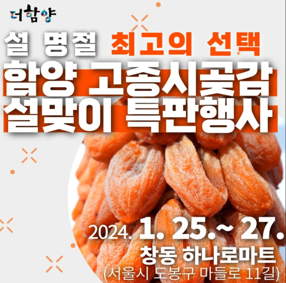 “함양고종시곶감·농특산물” 서울에서 맛보세요1.25 ~ 1.27, 서울 도봉구 창동하나로마트에서 설맞이 특판행사정호 기자 / |