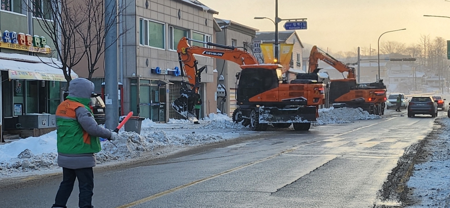 평창군, 대관령면 지역자율방재단 시가지 후속제설 실시대관령면 시가지 내 제설작업을 실시정민권 기자 / |