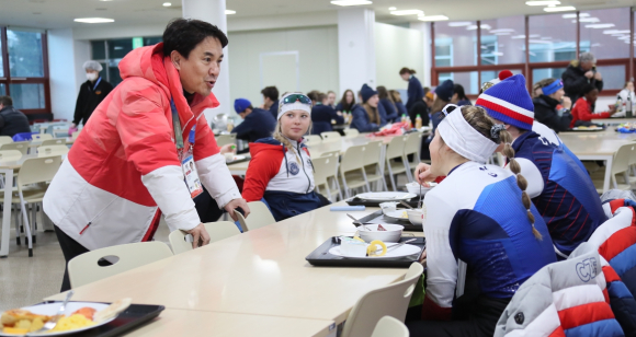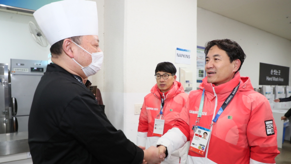 - 1.24.(수) 아침시간 강릉원주대 선수촌 찾아 식음 관계자 격려 - 조리진행과정, 식재료 관리상황, 메뉴 등을 직접 확인하고 선수들과 식사도 함께해