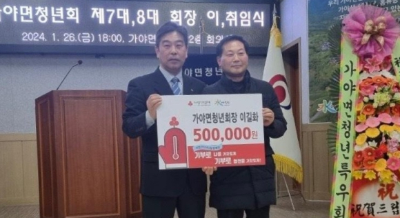합천군 가야면청년회 이길화 회장, 가야면에 이웃돕기 성금 기탁성금 50만원을 전달이광훈 기자 / |