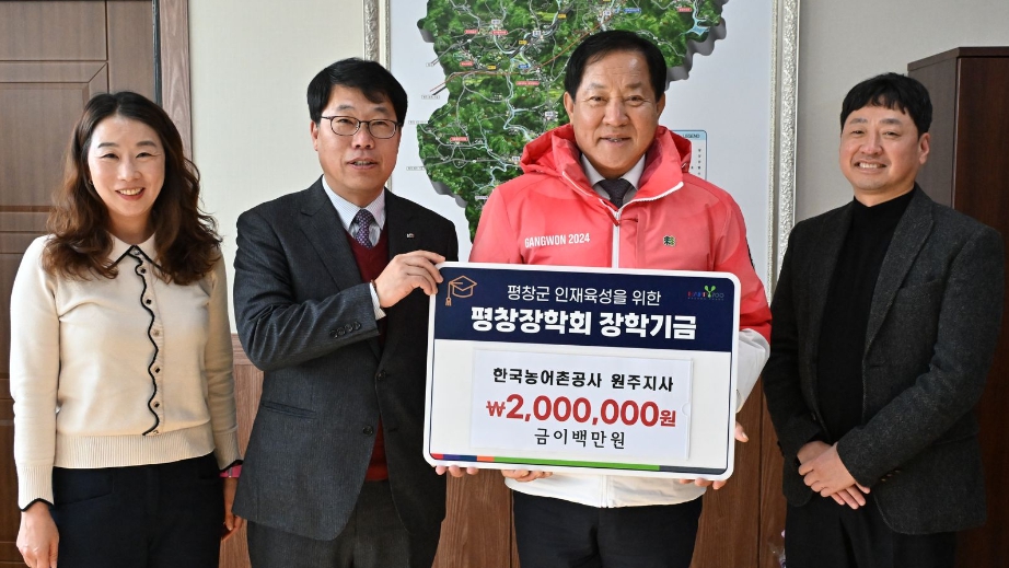 한국농어촌공사 원주지사, 평창장학회 장학금 2백만원 기탁NULL정민권 기자 / |