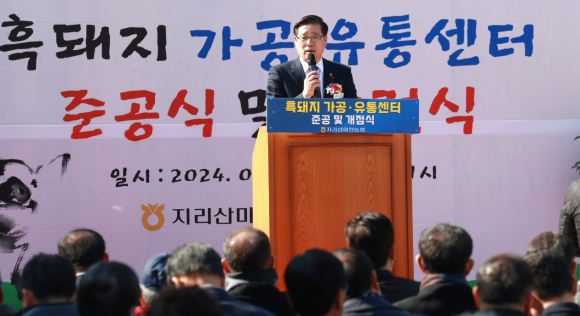 함양흑돼지 ‘지리산감도니’ 가공유통센터 준공식 열려!2일 200여 명 참석 발전 축원, 함양 대표 먹거리로 육성·농가 소득 증가·지역경제 활성화 기대정호 기자 / |