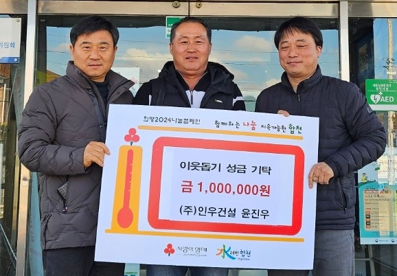 ㈜인우건설, 합천군 적중면에 이웃돕기 성금 기탁성금 100만원을 기탁이광훈 기자 / |