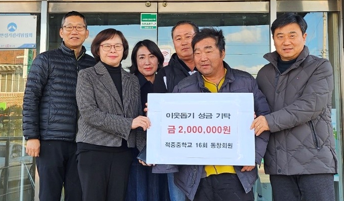 합천군 적중중학교 제16회 동창회원, 적중면에 이웃돕기 성금 기탁이웃돕기 성금 200만원을 기탁이광훈 기자 / |