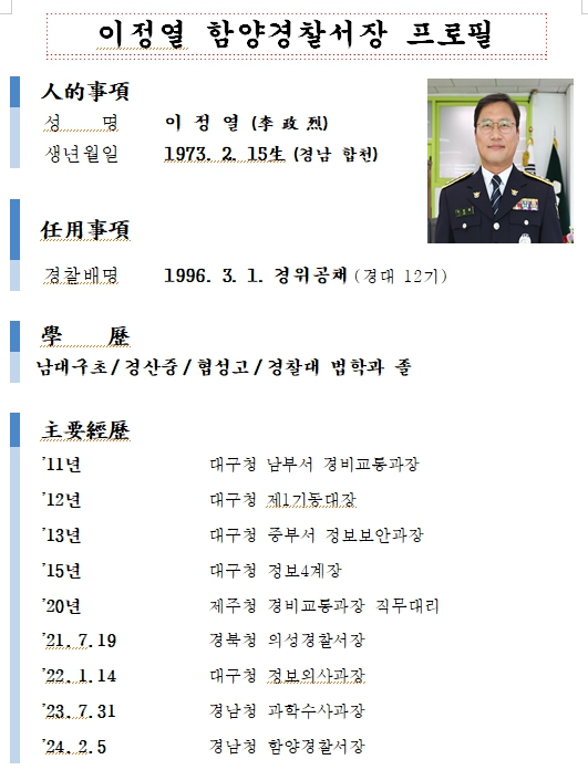 제78대 함양경찰서장 이정열 총경 취임- 함양경찰서, 지난 5일(월) 이정열 함양경찰서장 취임식 개최이광훈 기자 /