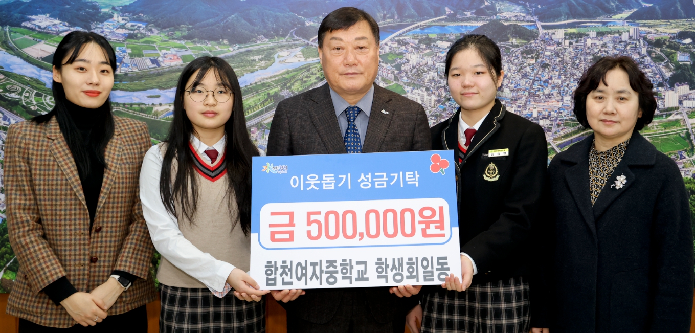 합천여중 학생회 일동, 합천군에 이웃돕기 성금 기탁NULL이광훈 기자 / |
