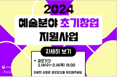 ‘2024 예술분야 창업기업 지원사업’ 신청서 접수… 110개 예술기업 발굴2월 14일부터 3월 14일까지… 예술 전문성과 실행 능력 겸비한 창업기업 모집유형별 전문 보육 프로그램 제공 통한 예술기업 경쟁력 강화 한용택 기자 / |