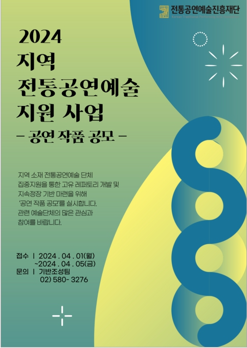 2024년 2월 21일 -- 전통공연예술진흥재단(이사장 김삼진)은 재단이 추진하는 ‘2024 아리랑 등 전통문화 확산’ 사업의 하나로 2024년 ‘광무대 전통상설공연’에 참여할 출연자와 ‘전국풍류자랑’에 참여할 공연 작품을 공모한다. ◇ ‘광무대 전통상설공연’ 출연자 모집 공모 2021년 처음 시작된 ‘광무대 전통상설공연’은 순수 전통예술의 진면목을 볼 수 있는 무대로, 해를 거듭할수록 참여하는 중견 예술인들의 완성도가 높아진다는 호평을 받고 있다. 개화기 쇠퇴하던 전통공연을 지켰던 당대 명인·명창들의 정신을 이어받은 ‘광무대’에서 새롭게 열릴 2024 ‘광무대 전통상설공연’ 출연진을 공모한다. 2024 광무대 전통상설공연은 오는 6~7월 두 달간 총 24회에 걸쳐 열린다. 중견 예술인의 무대인 만큼 만 40세 이상, 활동 경력 15년 이상이며, 순수 전통으로만 구성된 단독 공연이 가능한 전통예술인이 지원할 수 있다. 선정되면 서울 동대문 전통공연창작마루 광무대 공연장에서 1회 단독 공연과 출연료 300만 원 정액 지급 및 무대·음향·조명·운영·홍보물 제작 등 공연에 필요한 부대사항을 지원받아 공연하게 된다.