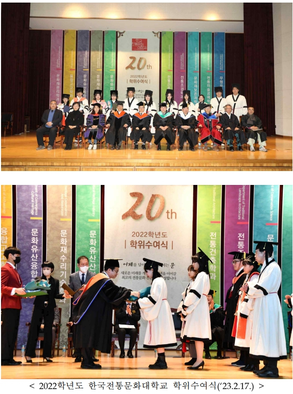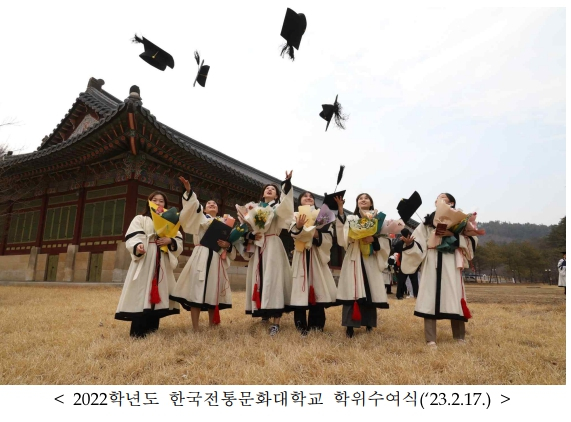 - 한국전통문화대학교 2023학년도 학위수여식 개최(2.23.)… 총 204명(박사 8·석사 69·학사 127) 졸업