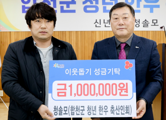 합천군 청년 한우 축산인회‘청솔모’정기총회 개최- 이웃돕기 성금 100만원 전달 -이광훈 기자 / |