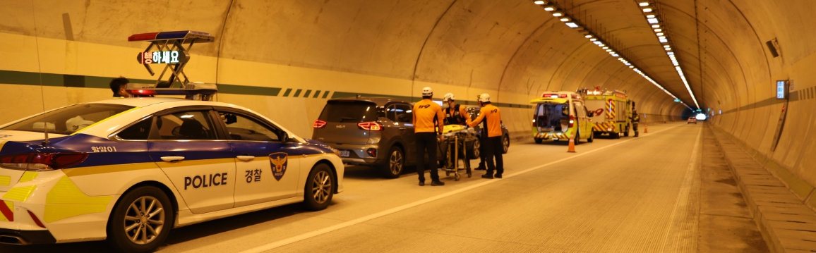 함양서, 터널 대형사고 대비 모의훈련 (FTX) 실시- 소방서, 국토관리사무소 등 유관기관과 시설물 점검, 모의훈련 실시 -이광훈 기자 / |