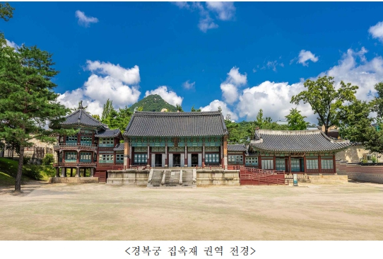경복궁의 건청궁 권역 서편에 위치한 집옥재(集玉齋)는 ‘옥처럼 귀한 보배(서책)를 모은다’라는 의미를 가진 전각으로, 고종이 서재 겸 집무실로 사용하며 외국 사신들을 접견했던 장소이다. 2층 구조의 팔각형 누각인 ‘팔우정’과 단층 전각인 ‘협길당’이 양옆에 배치되어 있다.