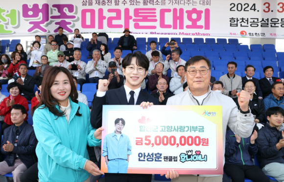 합천군, ‘미스터트롯2 진 안성훈’ 홍보대사로 위촉- 팬클럽 후니애니, 고향사랑기부금 500만원 기탁 -이광훈 기자 / |