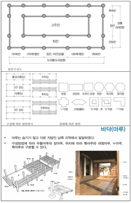 * 맞배지붕: 지붕면의 앞뒤로만 경사를 지어 기와를 올리는 지붕으로 옆에는 판재를 이어 붙여서 비바람을 막음