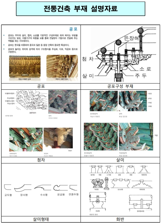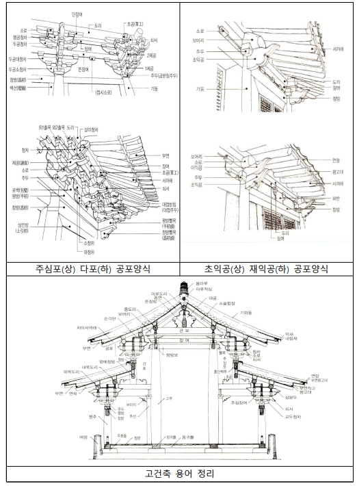 * 다포: 처마의 무게를 받치기 위해 기둥 상부에 짜 맞추어 올린 구조물인 ‘공포’를 기둥 위와 기둥과 기둥 사이에도 꾸며 놓은 건축양식