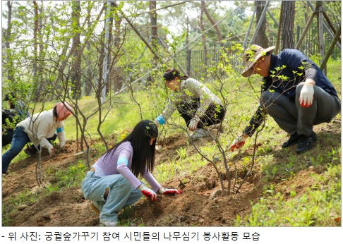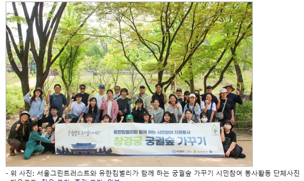 | 올해는 지난해 심은 나무들을 지속적으로 보살피는 한편, 나무를 포함해 궁궐숲의 품격에 맞는 야생화를 추가로 심어 자연스러운 숲의 모습을 구현하고 건강성 회복에 기여할 예정이다. 궁궐숲 가꾸기는 창경궁의 수목과 녹지를 보전하는 데 있어 사회적 공감과 지지를 얻어내고, 특히 창경궁을 찾는 시민들이 직접 참여함으로써 창경궁 수목과 녹지의 지속 가능한 관리 및 가치 향상을 위해 민관이 함께 노력한다는 점에서 큰 의의가 있다. 서울그린트러스트는 궁궐숲에 대한 시민들의 관심을 높이기 위해 봉사활동 외에도 다양한 커뮤니케이션 활동을 이어나갈 예정이다. 자세한 내용은 서울그린트러스트 내 궁궐숲캠페인 페이지(www.greentrust.or.kr/palaceforest)에서 확인할 수 있다.