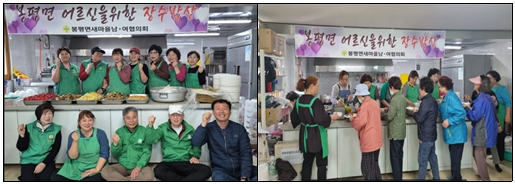 ੦ 지난(4.26.), 봉평면새마을남여협의회(회장 김철형, 김영숙)는 대한노인회 봉평면분회 경로당에서 장수식당을 운영하여 지역 어르신 150여 분을 위해 음식을 만들어 대접하며 이웃 사랑을 실천하였음.