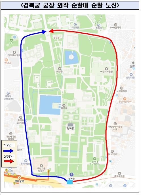 경복궁관리소, 종로경찰서-종로구청과 경복궁 궁장외곽 합동 순찰대 발족- 경복궁 궁장 양방향 순찰 및 영추문·건춘문 인근 순찰차 배치 등 … 선제적 예방 추진정호 기자 / |