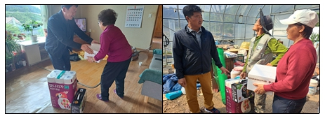 ੦ 지난(5.14.), 방림면지역사회보장협의체(위원장 김종완, 유달룡)는 2024년 특화사업 「해피투게더 방림」 프로젝트를 추진하여 생활형편이 어려운 복지사각지대 14가구를 방문하여 안부를 확인하고, 가정에 필요한 물품을 지원하는 등 다함께 행복한 방림을 실현하기 위한 활동을 전개하였음.