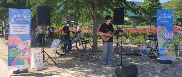합천 핫들생태공원에서 뮤지시스 버스킹 공연 진행뮤지션 이그린과 퓨전 국악소리꾼 김새아가 공연을 진행이광훈 기자 / |