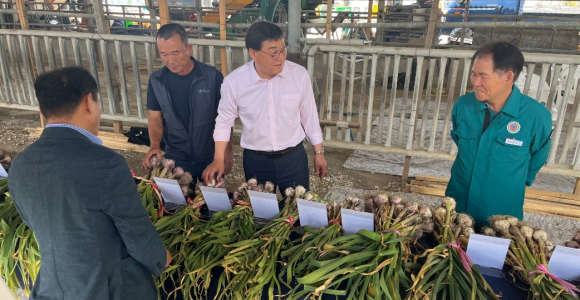 합천군(군수 김윤철)은 지난 21일 적중면 마늘 생산 현장에서 합천군수, 군의원, 농촌진흥청 및 경남농업기술원 관계자 등 50여명이 참석한 가운데 마늘 우량 종구 평가회를 가졌다. 이날 전시된 마늘 종구는 경남농업기술원(양파연구소)에서 분양받은 조직배양(무병) 마늘과 그 주아를 이용해 생산된 마늘 종구로 일반 마늘에 비해 성능이 120~140% 정도 높은 것으로 평가된다. 바이러스 및 병원균 감염으로 품질과 수량이 떨어지는 일반 마늘 종구를 획기적으로 갱신할 수 있을 것으로 예상된다.