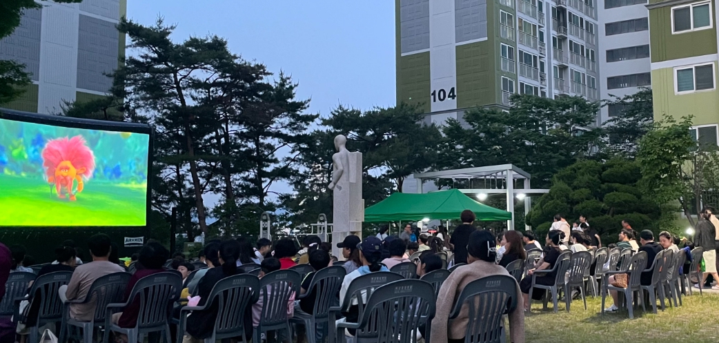 공무원연금공단 부산지부, 가정의 달 기념 아파트 작은 영화제 개최영화를 보러 광장으로 나온 입주민들에게 직접 만든 팝콘과 솜사탕을 나누어주면서 행사의 즐거움을 더해김철상 기자 / |