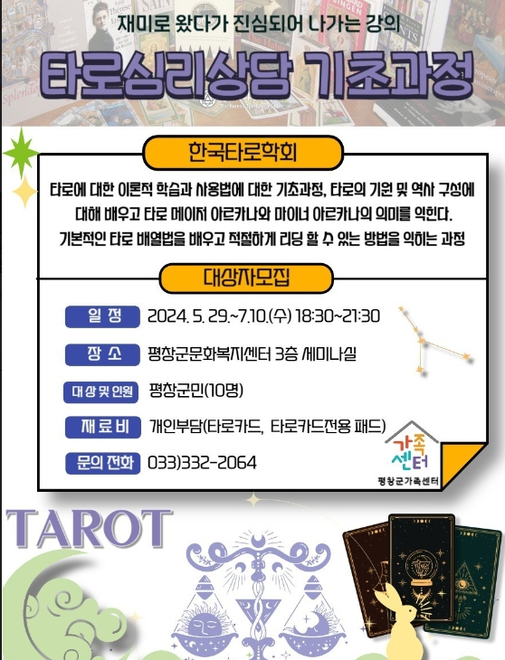 평창군가족센터, `타로심리상담 기초과정반` 개강NULL한용택 기자 /