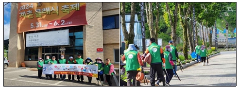 ....................................【미 담 사 례】..................................... □ 방림면 명예환경감시원, 문화시민운동 환경정화 실시 ੦ 어제(5.27.), 방림면 명예환경감시원(회장 최순자) 회원 15명은 굿매너 문화시민운동의 일환으로 오는 5월 31일 개막하는 계촌클래식축제를 대비하여 축제장 및 시가지 일대 쓰레기 줍기 등 환경정화 활동을 실시하여 깨끗한 가로환경 조성에 일조하였음.