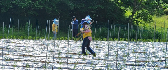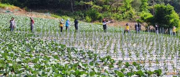 진부농협·평창군 사회복지협의회 합동 일손돕기 실시우박피해 1농가 5,000평에 피해 복구 작업을 위해 구슬땀한용택 기자 / |