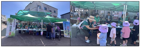 | □ 봉평면새마을남여협의회, 폐현수막 재활용품 나눔 캠페인 ੦ 어제(6.12.), 봉평면새마을남여협의회(회장 김철형, 김영숙)는 봉평 장날을 맞아 관광객 및 주민을 대상으로 전통시장에서 폐현수막과 재활용품(페트병, 병뚜껑 등)으로 만든 가방, 앞치마 등 생활용품을 전시하고 일부 품목 무료 나누는 캠페인을 실시하였음.