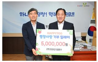 ....................................【미 담 사 례】..................................... □ ㈜프라코, 해피700 평창사랑 기부 릴레이 500만 원 기탁 ੦ 어제(7.2.), ㈜프라코(사장 임윤수)는 해피700 평창사랑 기부 릴레이에 동참하며 우리군에 고향사랑기부금 500만 원을 기탁하였음.