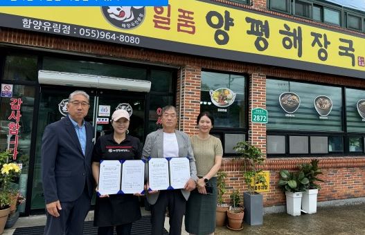 함양 유림면 지역사회보장협의체-양평해장국 업무협약9일 오전 협약 체결, 매월 1회 저소득층 3가구 식사류 등 지원 약속김도형 기자 / |