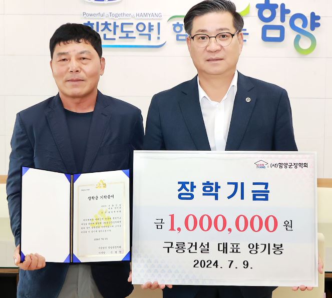 함양 구룡건설 양기봉 대표 장학금 100만 원 기탁NULL김철상 기자 / |