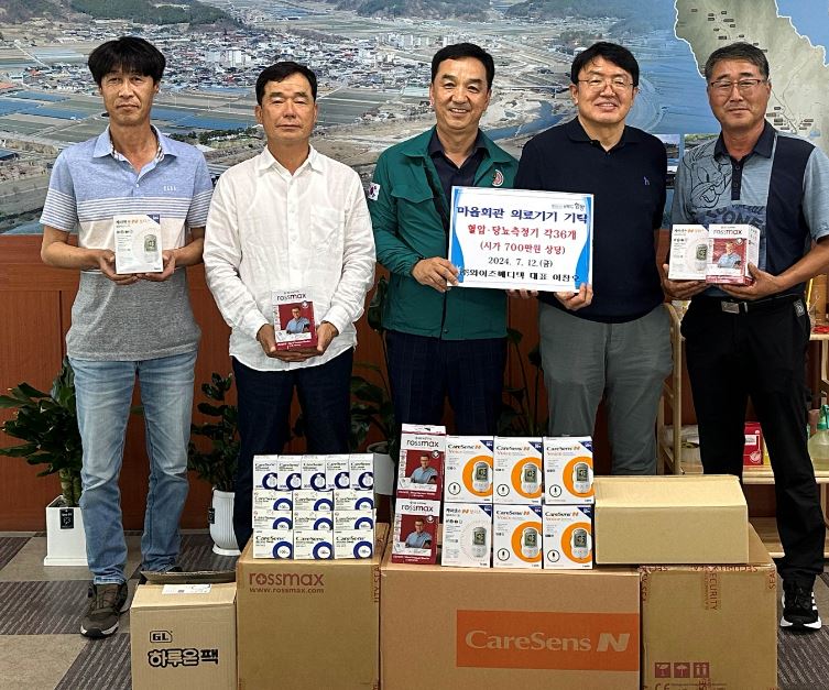 함양 향우로 경기도 안양시에서 ㈜와이즈메디텍을 운영하고 있는 이창오 대표가 12일 안의면사무소를 방문해 시가 700만 원 상당의 혈압측정기와 당뇨측정기 각 36개 씩을 기탁했다. 안의면 교북리 출신 이창오 대표는 “안의면내 36개 마을회관에 전달하여 마을회관(경로당)을 이용하는 어르신들의 건강체크를 위해 사용했으면 하는 바람이다.”라며 기탁 의사를 밝혔다. 이에 박문기 면장은 “늘 고향을 잊지 않고 따뜻한 마음을 전해주어 고맙다. 기탁한 의료기기는 안의면 어르신들의 건강관리에 도움이 될 수 있도록 소중히 잘 전달하겠다.”라며 감사의 마음을 전했다.
