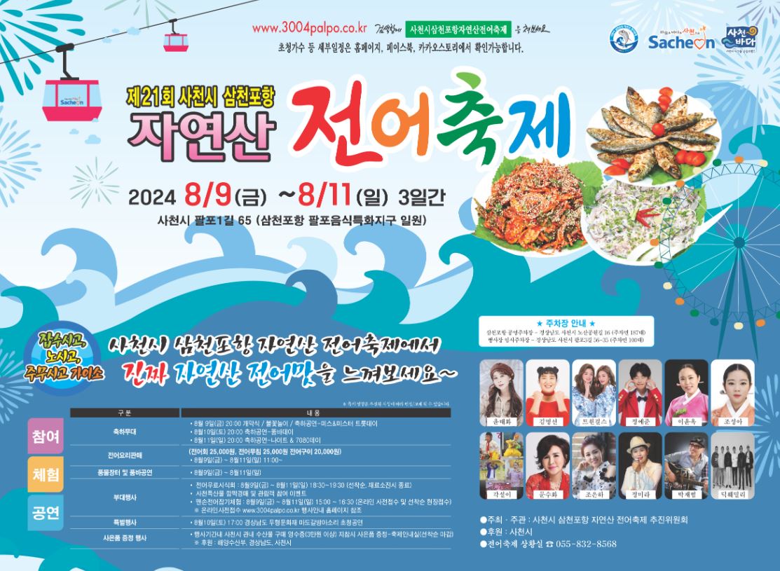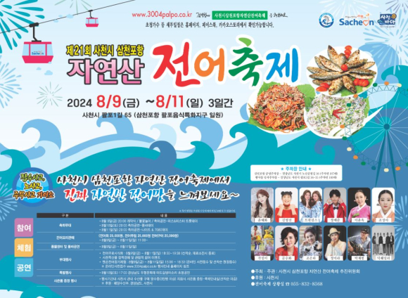 여름 전어의 맛을 느낄 수 있는 ‘제21회 사천시 삼천포항 자연산 전어축제’가 8월 9일부터 11일까지 3일간 삼천포항 팔포음식특화지구 일원에서 열린다.