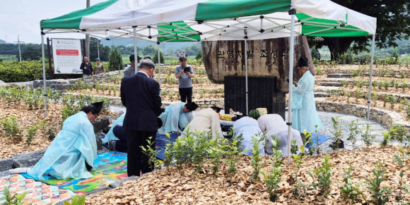 함양 휴천 동호차밭 조성기념 고유제 개최13일 김종직 선생 관영차밭 터 동호마을에서 선산 김씨 종중 고유제 개최김도형 기자 / |