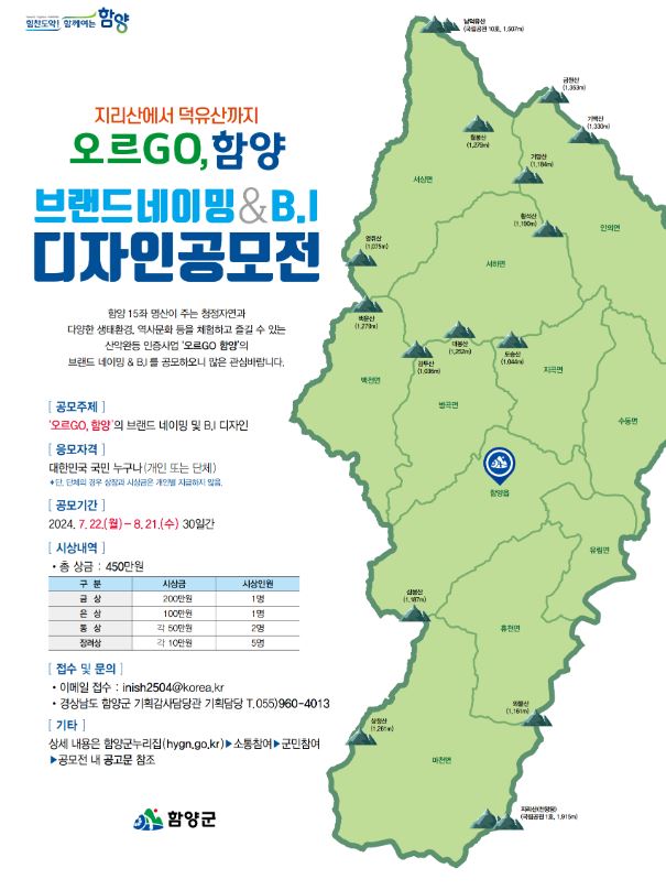 함양군, 지리산에서 덕유산까지 ‘오르고(GO), 함양’ 디자인 공모