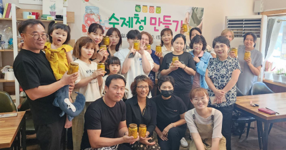 함양군 지역사회보장협의체 다누리분과, 과일 수제청 나눔 실천20일 결혼이주여성과 함께 만든 수제청 지역아동센터 전달한용택 기자 / |