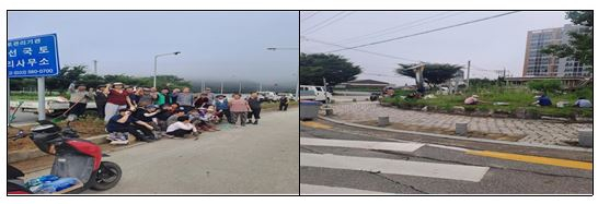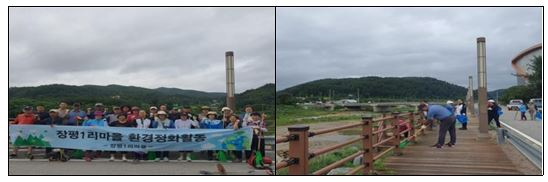 | □ 용평면 장평1리, 마을환경정화 활동 ੦ 지난(7.28.), 용평면 장평1리(이장 심상현) 주민들은 이른 아침부터 깨끗한 마을환경 조성을 위한 제초 작업 등 마을환경정화 활동을 실시하였음.
